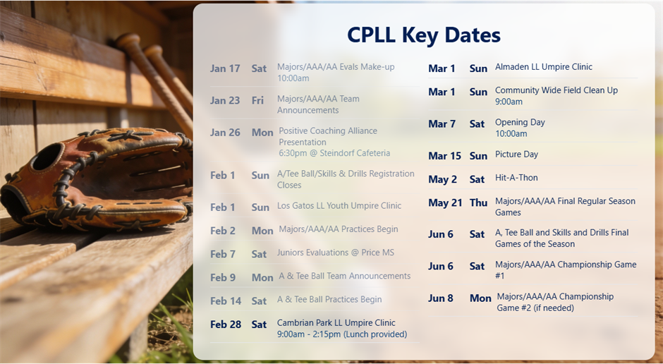 Cambrian Park Little League 3001 Ross Avenue San Jose, California 95124